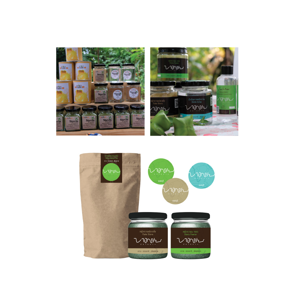 - สวนสมุนไพรเฉลิมพรเกียรติ เป็นผลิตภัณฑ์จากหญ้าหวาน (ชนิดผง ชนิดเกล็ด และชนิดน้ำ) ถั่วดาวอินคาและสมุนไพรชนิดต่าง ๆ