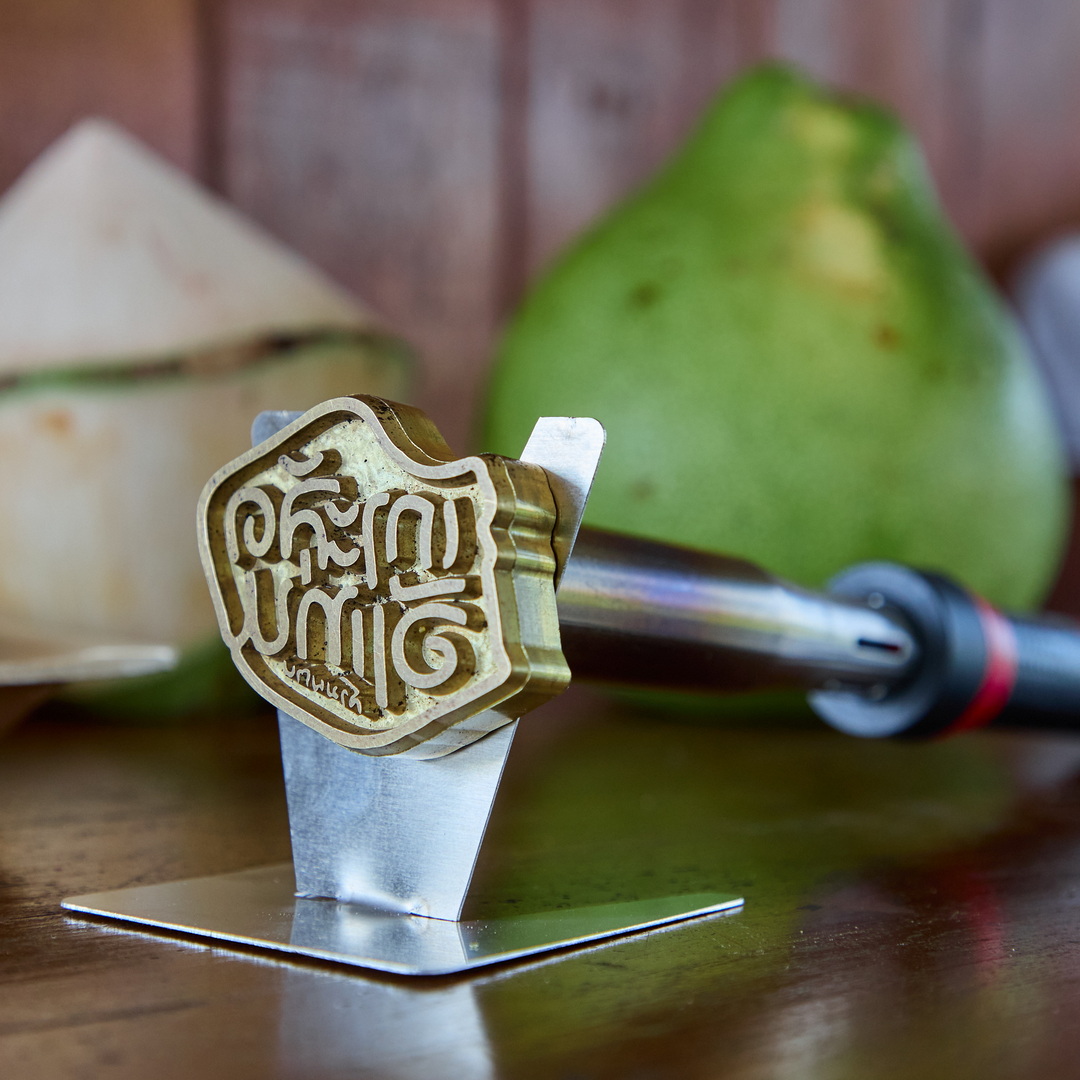 ตราประทับร้อนบนมะพร้าวอินทรีย์